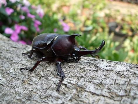 介紹: 獨角仙為大型甲蟲,因為雄性獨角仙的頭部有一支巨大的角,故稱之。雄成蟲頭部有一觭角突起,可以上下活動,前胸背中央亦有一長角突起, 尖端分叉,不可活動,雄蟲的觭角用來爭奪食物或對抗情敵,體長約40~60mm,雌成蟲體長約35~50mm。