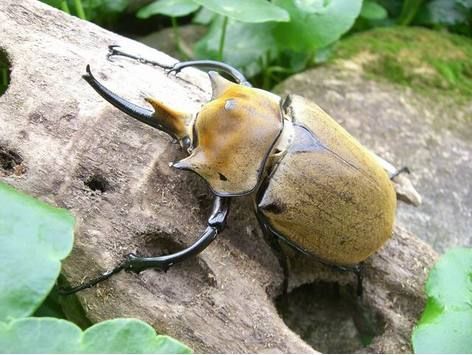 介紹: 成蟲外觀厚實,體表布滿金黃色短毛,容易因為摩擦碰撞而脫落,胸角向前長出。雄蟲體長約50~137mm,雌蟲體長約50~75mm。幼蟲期為一年半至兩年,時間較長,不過由於飼養簡易,成蟲個體較大,也身受眾多玩家寵愛。